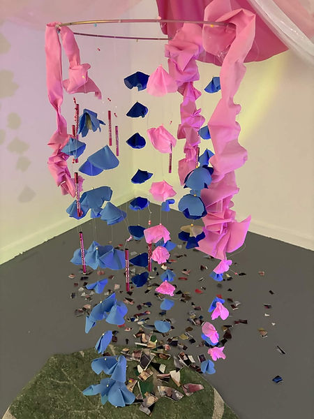 ‘Who’s to blame?’- This piece of work looks at addressing the societal tendency to blame women for others reactions and actions towards their bodies; and through highlighting societal norms, it sheds light to the unjust burden of blame that is placed on women. I chose to create this feminist piece of work as I have always felt quite passionately about how women are treated today though women before us have fought so hard for a safer environment for us to live in. I used different stereotypically ‘girly’ patterns and sewing machine to create a patchwork pattern. In doing so I wanted to draw attention to and pose questions for established gender norms and expectations by using hyper femme patterns.